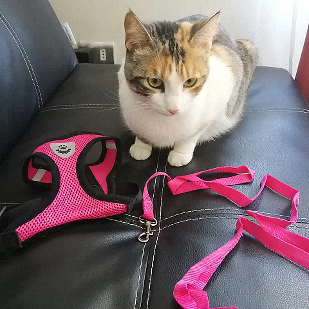 2. Arnês cão ou gato ajustável. Existem 2 fivelas ajustáveis no arnês de estimação que podem ser ajustadas de acordo com o tamanho dos cães ou gatos.