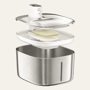 A capacidade do tanque de água é 135 floz/4L, que pode atender às necessidades de água potável de gatos ou cães por 10-15 dias (mesmo um cão grande, como Labradores, Pastores Alemães, etc.). Se você costuma sair com frequência e não pode repor a água para gatos, é uma escolha sábia.